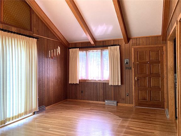Looking for a truly move into home? Check out this adorable two bedroom, brick chalet style residence in California Borough. Enter into a huge, open Living Room, Dining Room combo that measures a whopping 25 feet across! There are 2 sliding doors that lead to an Alpine Style, wrap around deck, that let in an abundance of natural light. Appliances are included in L-shaped kitchen. Follow the gleaming hardwood floors down the wide hallway to two, light colored bedrooms, each with a nice sized closet. A full bath in the hall has a large vanity, mirror to the ceiling and linen closet. Take a trek downstairs, one side for games and fun, the other for cuddling by the fire. A full utility room has laundry (washer and dryer included), a powder room, separate walk-in shower and storage space/shelves. Single car integral garage with auto door. Private, flat back yard!