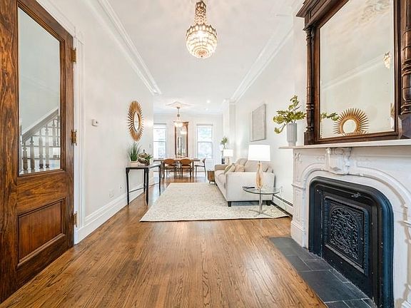 Looking for a home in the Hamilton Park Sector of Downtown within short distance to the Newport Mall, PATH Station, and Light rail, with rooftop views of downtown Jersey City? The search is over, as 244 7th St has it all! An impeccably restored rooftop deck with the added convenience of a wet bar located right inside gives way for a perfect summer evening drink and cool down after a long day of work, or for hosting guests during special events. This stunning 5 bedroom / 3 bath brownstone with high quality finishes throughout is now available, and won’t last long. Step inside onto the sun drenched parlor level, as gleaming hardwood floors run throughout the entirety of the home, along with historic details, and exquisite chandeliers which make for one-of-a-kind statement pieces. Beautifully restored fireplace mantels, a grand living space and dining room complete this level. Head downstairs into the kitchen complete with beautifully laid tile, custom cabinetry, a stainless-steel appliance package, white Quartz countertops, and an abundance of recessed lighting to brighten the space. On this garden level, you also have a bedroom and full bath with a private entrance, perfect for an in-law suite, home office or gym. Directly off the kitchen is the polished concrete backyard, giving way to endless possibilities and as you enter back inside, you’ll find a mudroom and enclosed laundry room. Venture upstairs to the top two levels complete with two great-sized bedrooms and a bath on each floor. The spacious primary bedroom located on the third floor features a large walk-in closet with an ensuite featuring an oversized vanity and standup shower with bench. Don’t forget to head to the top of this home to enjoy your upper-level kitchenette, wine fridge and fabulous rooftop oasis. This lovely home is ready for its new family.