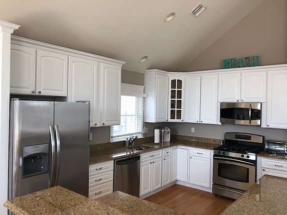 Recently remodeled and upgraded, better then new construction 4 bedroom and 3.5 bathroom single family home in Stone Harbor. Just a block and a half from the beach and bay with water views! Exterior features include private and off street parking, maintenance free vinyl siding, outdoor shower, fenced in back yard with storage shed. Three total decks with 2 in the front and one in the rear to enjoy summer evenings and entertaining. Upside down concept home with 4 large bedrooms including junior master suite with fully upgraded bathroom, on ground floor with sliding glass doors leading to deck with vinyl railings. Stairwell leading to second floor has been freshened up with traditional shiplap. Open concept kitchen, living and dinging rooms with vaulted ceilings and plenty of natural light. Kitchen has stainless steel appliances, white cabinets and granite countertops. Master bedroom on this floor with walk in closet, fully tiled bathroom with his and her sinks, and tub. Other features include central air, gas heat, hardwood floors throughout, and walking distance to the best restaurants, shopping and beaches in the town. Being sold mostly furnished and turnkey.