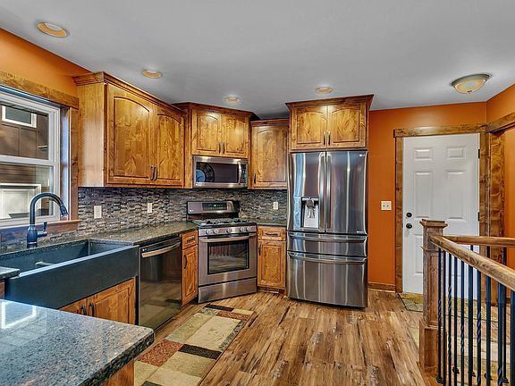STUNNING RENOVATED RAMBLER WITH DREAM SHOP! Beautifully updated 2 bedroom, 1 bath rambler featuring a fully insulated/ heated double deep 1 stall attached garage with epoxy flooring. Step inside to a fully renovated main level showcasing custom alder cabinetry, millwork, and solid knotty alder interior doors, quartz countertops, a new kitchen sink, stylish lighting and ceiling fan, luxury vinyl plank flooring, new carpet, and completely updated electrical and plumbing. The main floor bathroom offers tile flooring with in floor heat for added comfort. Enjoy peace of mind with a new furnace, ductwork, central A/C and an energy-efficient air source heat pump. The basement includes 2 egress windows and is already plumbed for a future bathroom- just waiting for your finishing touches! The exterior is equally impressive with all new windows, doors( including patio and garage). LP Smart Side engineered wood siding, decorative aluminum soffits, and steel fascia covers.