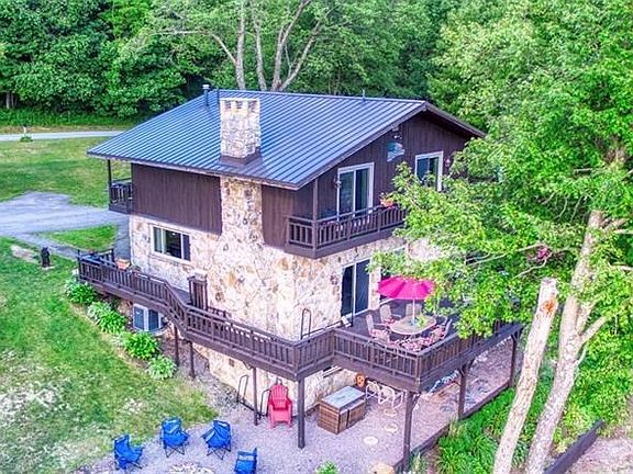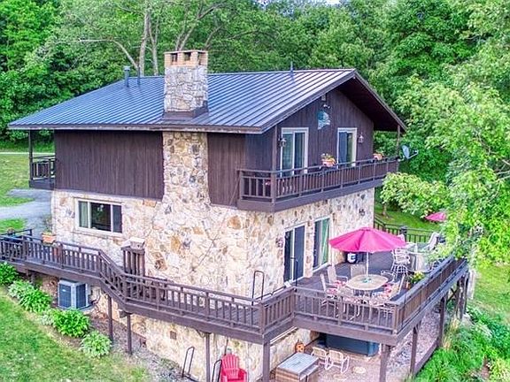 Here is your Mountain Home just a few minutes from the North Face entrance to 7 Springs Mountain Resort! This home offers so much! 5 bedrooms, 3 full & 3 half baths, large updated kitchen, 2 family rooms both with stone cased wood burning fireplaces, bar, hot tub, large deck off the family room and decks off each bedroom on the upper level! This home in the Laurel Highlands sits on 1 acre with no HOA fees and public water and natural gas! Out the lower level is the hot tub, and camp fire area. Sunsets are amazing off the back decks! Rare almost level driveway in Alpine Heights area too with plenty of space for parking! In the winter the ski slopes can be seen out the large windows from the bedrooms and family room! Currently a highly rented investment property that is turnkey and mostly furnished! Don't let this mountain home slip away! So many activities to do at the resorts, Ohiopyle, Fallingwater, and many state parks!