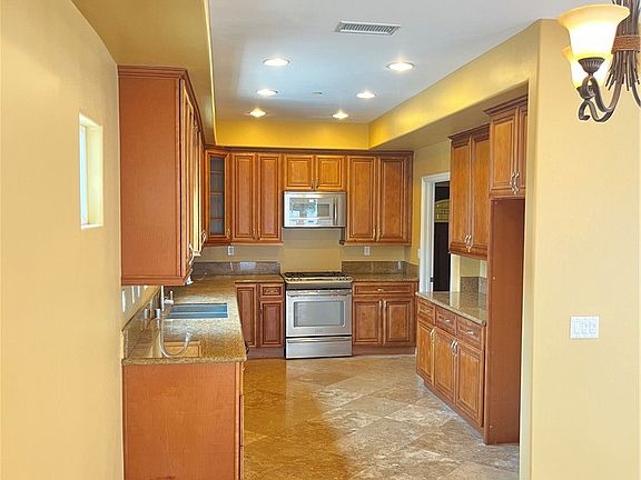 Gorgeous travertine floorsCity viewsTall base moldingsMany new appliancesGranite countersHardwood cabinetry