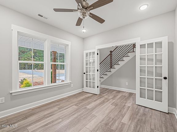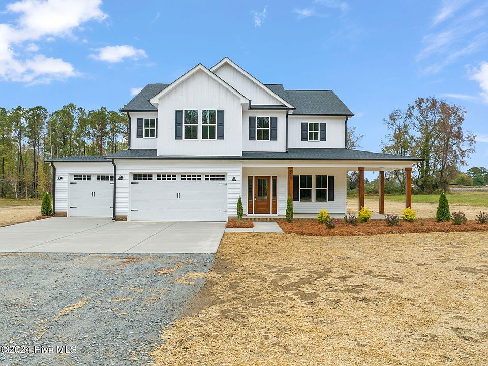 Nestled on an unrestricked 1.5 acre lot this stunning new construction farmhouse features a spacious layout with 4 bedrooms, 2.5 baths and an office/flex space. The kitchen has an island with quartz countertops on custom cabinets and a large gorgeous pantry. Lots of molding details. Lvp flooring thoughout downstairs and beautiful tile in the wet areas. Enjoy outdoor living on the front and back covered porches. The large 3 car garage makes storage a breeze. Fabulous location near Campbell Univiersity and easy access to Raleigh and Fayetteville.