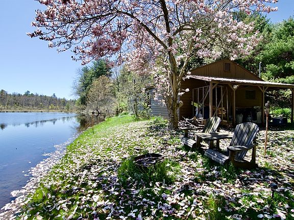 Come see this Cabin on the lake with stunning views. A hop and skip away from Amherst center. This unique 3-bedroom, 1.5-bath home sits on 17 acres on the shore of Baker Pond. Inside this rustic dwelling, enjoy panoramic water views from the windows as you are immersed in a lovely landscape surrounded by woods and wildlife. New roof, hydronic baseboards, water heater, and upgraded electric system as of 2016. Blown-in insulation and a wood stove make for cozy winter nights. Semi-private sandy pond is great for swimming and paddling in summer and skating in winter.