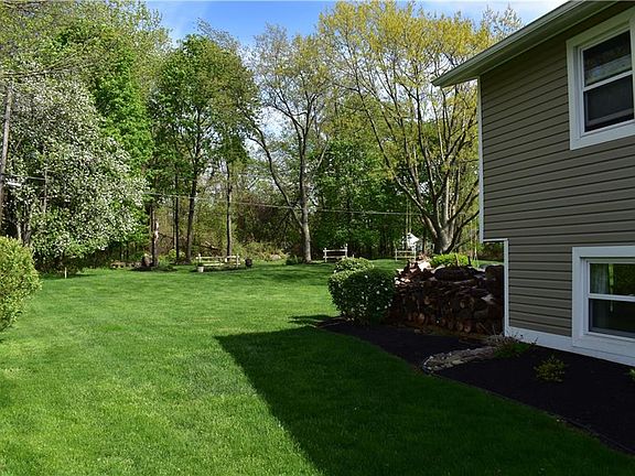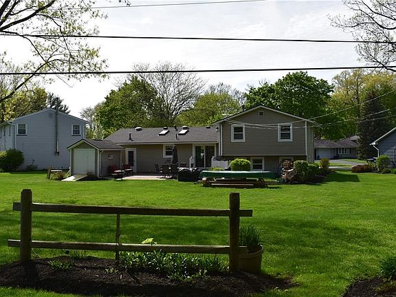 Beautiful 4 bedroom 1.5 bath split level home nestled on a large park like lot that backs to woods! Features of this home include an updated kitchen,updated bathrooms with a whirlpool tub in the full bath,all newer replacement windows,newer 90+ furnace,central air,newer roof,200 amp service,glass block basement windows,heated garage,concrete patio,and a wood stove that can provide heat throughout the house. Guinness light fixture in the garage is excluded!