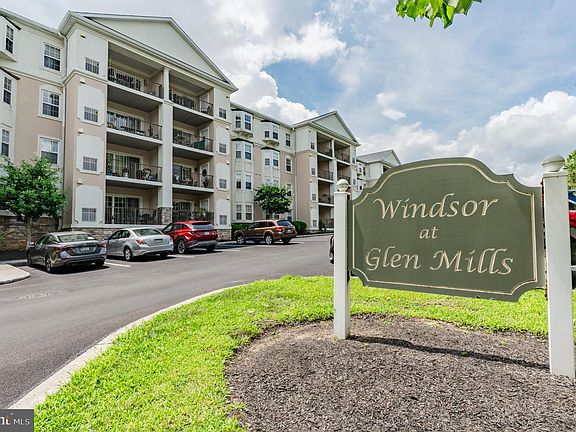 Discover unparalleled elegance in this stunning end-unit condo in the sought-after Windsor at Glen Mills, a premier 55+ community designed for effortless living. Spanning 1,187 sq ft, this larger-than-most unit is in pristine condition, offering 2 spacious bedrooms, 2 luxurious bathrooms, and exceptional features tailored for comfort and convenience. Enter to find hardwood flooring in the hallways, plush carpet in the bedrooms and living areas, and ceramic tile in both bathrooms. The master suite is a serene haven, featuring a private bathroom with a walk-in shower, dual closets (including a walk-in), high ceilings, a ceiling fan, and an expansive bay window that bathes the room in natural light. The second bedroom is generously sized, with a large closet and high ceilings, perfect for guests or a home office. This end-unit stands out with rare amenities: a private deeded parking spot in the indoor garage, located next to the elevator, which opens steps from your door for ultimate accessibility. A private storage unit adjacent to the parking spot adds extra convenience. Relax or entertain on your large balcony, ideal for enjoying morning coffee or evening breezes. The home boasts modern upgrades, including a newer HVAC system, water heater, and select windows, ensuring energy efficiency and peace of mind. High ceilings throughout enhance the open, airy ambiance. At Windsor at Glen Mills, enjoy a maintenance-free lifestyle with access to an exceptional clubhouse featuring a bar/cafeteria, library, mailroom/package room, billiard room, TV room, gaming room, and an office with computers. Stay active with the accessible outdoor pool, perfect for warm days. This vibrant 55+ community takes care of everything, so you can focus on living your best life. Don't miss this rare opportunity to own a spacious, move-in-ready end-unit condo in Glen Mills' premier 55+ community. With its prime location, modern upgrades, and unmatched amenities, this home defines luxury and convenience. Schedule your tour today!