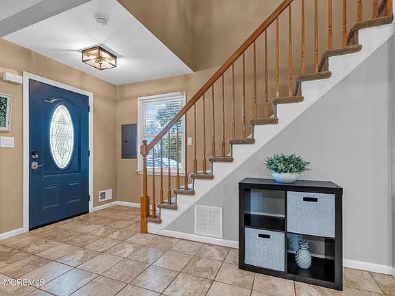 Move in ready! Situated in a lovely neighborhood on cul de sac street, this spacious 3-bedroom home offers an open concept, updated full bath, recessed lighting, gas fireplace, newer HVAC system and fully fenced backyard with a great outdoor space featuring a paver patio. A sun-filled breakfast nook/ eat in area is the perfect place to start your day. The primary bedroom offers an oversized walk-in closet with custom shelving, a glimpse of the Sandy Hook Bay and an attached full bath for convenience. Walk up attic and outdoor shed offers plenty of additional storage. Minutes to ferry, beaches and transportation this terrific home is not to be missed.