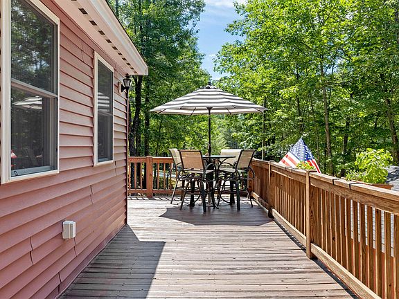 The moment you drive in the driveway you will feel transported away to a peaceful, private and serene oasis with access to Belleau Lake! This meticulous and stunning furnished 3 bedroom, 2 bath Contemporary with a 2-car detached garage is situated on a wonderful .71 acre lot with impressive curb appeal. The home features a bright, open concept living room with a cathedral ceiling, beautiful stone hearth with a propane fireplace, sliders onto an inviting front wrap around deck perfect for entertaining family and friends. The well-appointed kitchen with granite counters and stainless appliances is a joy to cook in and easy to serve meals in the adjoining dining area. A first floor bedroom and full bathroom complete the first level. You will love the generous size primary bedroom with ensuite full bathroom. A loft style room which can be used for an office or an additional sleeping area complete the second level. The finished lower level offers an expansive family room with a pellet stove, lots of light coming in through the sliders, dining area and day bed for extra guests as well as an additional large bedroom. Utility room and laundry in the lower level. The back yard has a patio and fire pit perfect for entertaining. The boat launch, shared sandy beach, day dock, picnic tables, benches and horse shoe pits are conveniently located across the street. Near restaurants and store. Enjoy all 4 seasons living at the lake!