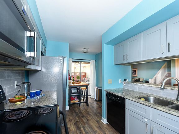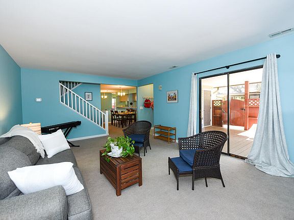 Wonderful three bedroom condo with updated kitchen and baths, lots of light and open floorplan. Spacious living room has built-in bookcases and wood burning fireplace. Upstairs there are three bedrooms with nice closets including a walk-in in the Primary bedroom. Both baths have skylights and granite countertops. The entry to the home is by way of a spacious deck for relaxing or entertaining. All appliances remain. You will enjoy the neighborhood amenities which include tennis, pool and clubhouse, and the property has an easy walk to the Friday Center Park and Ride lot.