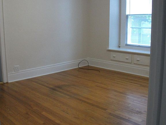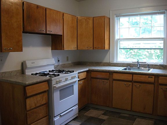 Two bedrooms, 1 full bath, living room, dining room (all hardwoods), kitchen with stove and refrigerator, front and rear porches, coin-op laundry in basement, garage, off street parking. plus utilities