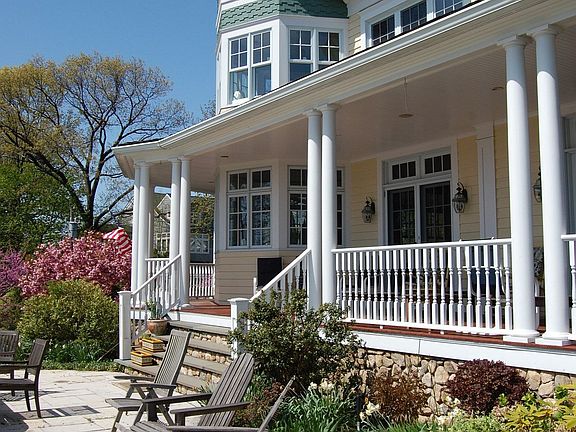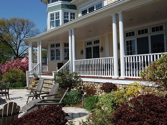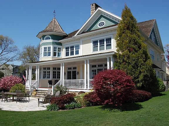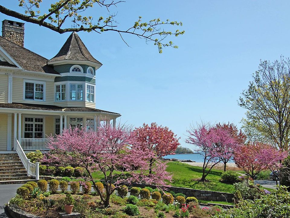 On a sun-drenched garden setting beside Hawthorne Beach, this beautiful Bryam Shore address captures phenomenal views clear across the cove to the charming Islands and Long Island Sound. White sailboats crisscross in the distance and colorful skies deepen the experience of living so close by the waters edge.Establishing a gracious entry to this over 8,000 sq ft Victorian, wide stone steps lead to a wraparound porch and a light filled reception hall with herringbone wood flooring. Living room with fireplace frames an extraordinary panorama of the waterscape. French double doors lead to the library, as well as to the outdoor living spaces, including stone terrace thats ideal for summertime gatherings inspired by the nautical scenery. In the formal dining room two corner cabinets add a period touch to this home built within recent years and cheerful natural light filters in through West and North-facing windows, highlighting the striking architectural lines of a high ceiling and colonnaded passageway.Virtually everywhere you look there is a glimpse of the water. Wonderfully proportioned family room creates warm hospitality for entertaining with an inviting river rock fireplace and built-in theater and sound system for watching movies and sporting events w/friends. Spacious eat-in granite kitchen is wonderfully appointed w/large center island,wine cooler,Viking stove,Sub-Zero refrigerator and freezer,two Bosch dishwashers and Dacor oven as key features.Four-foot wide stairs lead from the center hall to the private suites. In the fire-lit master suite, there is beautiful circular sitting room with built in window seats for star-gazing. Lovely master bath has a whirlpool tub, steam shower, water closet and complemented by a walk-in dressing room. Inspired by the waterfront vista that unfolds before nearly every window, three additional bedrooms, each w/private bath. Main floor adds yet another guest/staff bedroom w/full bath, plus formal powder room to the mix. Expansive recreational appointments can be enjoyed in the lower level billiards room, the greenhouse and further possibilities to create another room of dreams on the 2nd floor of the 3-car garage.Theres nothing like stepping outside at sunrise to enjoy the tranquility of the water, reading on the beach, setting sail at sunset and just coming back home to kick back and relax in the company of good friends and family. All this and more await you in a home built w/a sense of the past and the vision for what life should be.