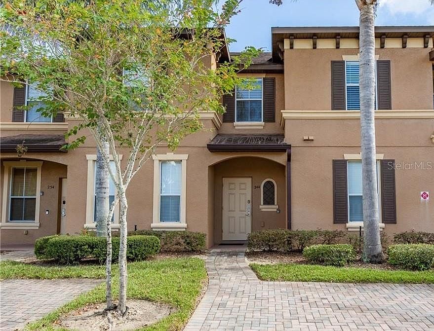 **WATER VIEW** Own your own DISNEY getaway and use it as a MONEY MAKING SHORT TERM RENTAL the rest of the year! This BEAUTIFULLY DECORATED and FULLY FURNISHED 4 bedroom, 3 FULL BATHROOM townhouse is ready for you or your guests and is FRESHLY PAINTED with a POND VIEW! One bedroom is downstairs with its own FULL BATHROOM and all other bedrooms are upstairs. Located in a GORGEOUS RESORT with everything right here for you and your guests. You have a RESORT STYLE POOL w/SLIDE and LAZY RIVER, hot tub, indoor sauna, steam room, FITNESS CENTER, TIKI BAR, RESTAURANT, arcade, ice cream shop, volleyball, PLAYGROUND and even SPA SERVICE when you need it to RELAX. This popular community is conveniently located minutes to DISNEY, attractions, grocery stores, shopping and the LOW HOA dues will cover PEST CONTROL, LANDSCAPING, VALET TRASH SERVICE, BASIC CABLE, WI-FI, PHONE, and 24 HOUR SECURITY exterior paint and roof replacement. Roofs are in process of getting replaced, NEW AC 2019, NEW Refrigerator, NEW attic insulation, NEW Ring Doorbell, NEW thermostat w/remote capabilities, keyless entry programable and NeEW master bath faucet.**NO CDD FEE**Just bring your toothbrush and swimsuit and have a blast! Conveys fully furnished!