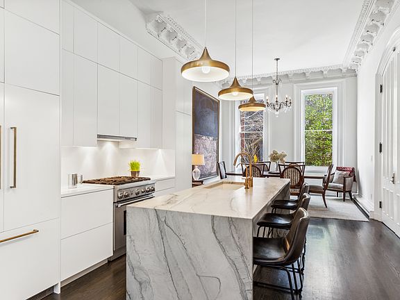 "Home Sweet Home" now has a new address Welcome to Fort Greene and your new digs at 244 Carlton. This incredibly sophisticated yet charming duplex brownstone rental offers the epitome of Brooklyn living. "Spacious" doesn't do justice to this gorgeous two-bedroom 2.5 bath with a den/office residence. And it's many elegant features speak to your good taste. This home is modern, yet authentically detailed, as well as being elegant, spacious, functional, bright, and offers a perfect blend of classic brownstone charm and contemporary style.As you step inside the massive front door, you're greeted by the warm ambiance of rich oak floors that stretch throughout the living space. 12 foot ceilings and floor-to-ceiling western windows flood the interior with natural light, creating a bright and inviting atmosphere where you can begin to imagine cozy evenings gathered around the working gas fireplace in your large and elegant living room, adding an extra touch of comfort and sophistication to your home. Cooking enthusiasts will delight in the newly renovated kitchen, featuring top-of-the-line Fisher Paykel and Thermador appliances and leather finish natural quartzite waterfall island. Whether you're whipping up a gourmet meal or enjoying a casual breakfast, this kitchen is sure to inspire your culinary adventures. At 244 Carlton, you can eat IN or dine OUT on your large private terrace or.. in your beautifully landscaped garden. Either way, dinner parties are a must. Your guests will envy your large, beautiful half bath and the built in book cases with parlor level storage. On the garden level, you will find two giant bedrooms and a super cool home office. In addition to a second entrance, your garden level has a stunning master bedroom looking east features a decorative fireplace and luxurious en suite bath with walk-in shower, sumptuous tub for soaking, and dual sinks for added convenience and elegance. Your second bedroom can easily accommodate 2 or 3 bunk beds plus desks or a California king. And, there is a third level to this masterpiece an expansive custom built-in walk in cedar master closet on the basement level is big enough for a shopaholic's dream. This giant cedar closet provides ample storage space, and keeps your belongings organized and easily accessible. There is also a large capacity in unit washer and dryer on this level plus additional separate storage space. Small pet welcome upon approval, and with move-in available on April 1st, you can look forward to settling into your new home and making it your own this Spring. Don't miss out on the opportunity to call this stunning brownstone rental your own and experience the vibrant lifestyle of Fort Greene. Schedule your viewing today and embark on a new chapter of urban living in one of Brooklyn's most sought-after neighborhood. FinallyWelcome Home!