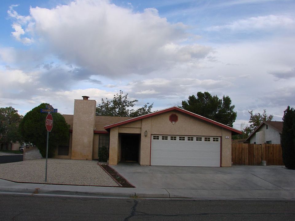 Wonderful single story home on corner lot with xeriscape front yard in established Eastridge Estates neighborhood. Easy commute to base back gate. Home features 4 bedrooms and 2 full bathrooms with vaulted ceilings in family and dining rooms. Living room has brick fireplace with raised hearth and mantle. Bathrooms have new dual-flush toilets. Fresh paint throughout. Attached two-car garage with automatic door opener. Covered patio in large fenced backyard. RV parking access in front. Perfect home for growing family! New roof 2017, New tile in 2017, Exterior paint and stucco 2018 New carpets 2020.
