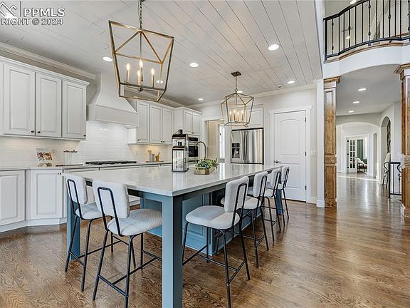 Set on a spacious lot with plenty of room between neighbors, this property backs to open space, creating a private retreat just minutes away from I-25, premier shopping, Plum Creek Golf Course, the Miller Activities Center (MAC), highly rated schools and the vibrant downtown Castle Rock area with it's array of shopping and local dining options. From the moment you step inside, you’ll notice the craftsmanship and sophisticated design of this luxury residence. The high-end kitchen is the heart of the home, featuring an oversized island, white quartz countertops, a classic subway tile backsplash, Jenn-Air stainless steel appliances, a double oven and gas range.The open floor plan effortlessly connects the kitchen, dining, and living areas, making it an entertainer’s dream. The open floor plan features an inviting living room with soaring ceilings, abundant natural light, and a gas fireplace that overlooks the covered back patio with views of open space. Additionally, a private study with French doors and custom trim adds versatility and custom design to the floor plan. The main-level master suite is thoughtfully designed, complete with its own fireplace, two walk-in closets, a convenient coffee bar, and private access to a patio. The spa-like master bathroom is a showstopper, showcasing granite countertops, custom travertine tile, a deep soaking tub, and heated tile floors. Upstairs, you’ll find four bedrooms, including one with an ensuite bath and two sharing a Jack-and-Jill bathroom. A spacious loft provides extra living space, while a built-in desk and shelving create an ideal homework or additional office area. The bonus room offers endless possibilities, from a playroom to a second living space. The unfinished basement, with 10-foot ceilings and over 2,400 sf, provides the perfect opportunity to design your dream space. Energy efficiency is a priority in this home and is double wrapped with two furnaces, providing comfort year round.