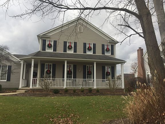 Quality Built John Hershberger 4/5 bedroom, 3 bath home in desirable Nottingham Gates, Pool and Tennis Community. Charming colonial with wrap around porch, 3 car garage and finished lower level. Beautifully painted white woodwork throughout this lovely home. Gracious Foyer w/Hrdwd Flrs opens to the formal Family Room, Living Room and Dining Room with lots of stunning custom moldings. Spacious and open Kitchen with lots of cabinets and counter space boast hrdwd flrs, black soapstone counters, and stainless steel appliances, updated in 2016. Wonderful large eating area with French Door leading to the professional stamped concrete Patio. Architectural Columns in the entry way to the Family Room featuring a wonderful Fireplace. The First Floor includes a nice sized Laundry Room that opens to the 3 car garage, a full bath and a private office, could be a 5th bedroom.Vaulted Master Suite with lots of windows and a private Master Bath w/ jetted tub, shower and large walk in closet. Three more nicely sized bedrooms and a full bath complete the second floor. Finished basement offers a multitude of recreation spaces, one large open area plus two more finished rooms for office or hobby as well as a large unfinished storage area. Beautiful Stamped Concrete Patio makes a wonderful outdoor entertaining space. This special home is located in one of Hudson's most desirable neighborhoods w/ street lights, sidewalks, pool, tennis courts, community club house, and hike and bike trail! New Carrier HVAC and Goodman commercial Water Heater installed 2018 and new 50 year architectural roof installed in 2019. Great place to call home!