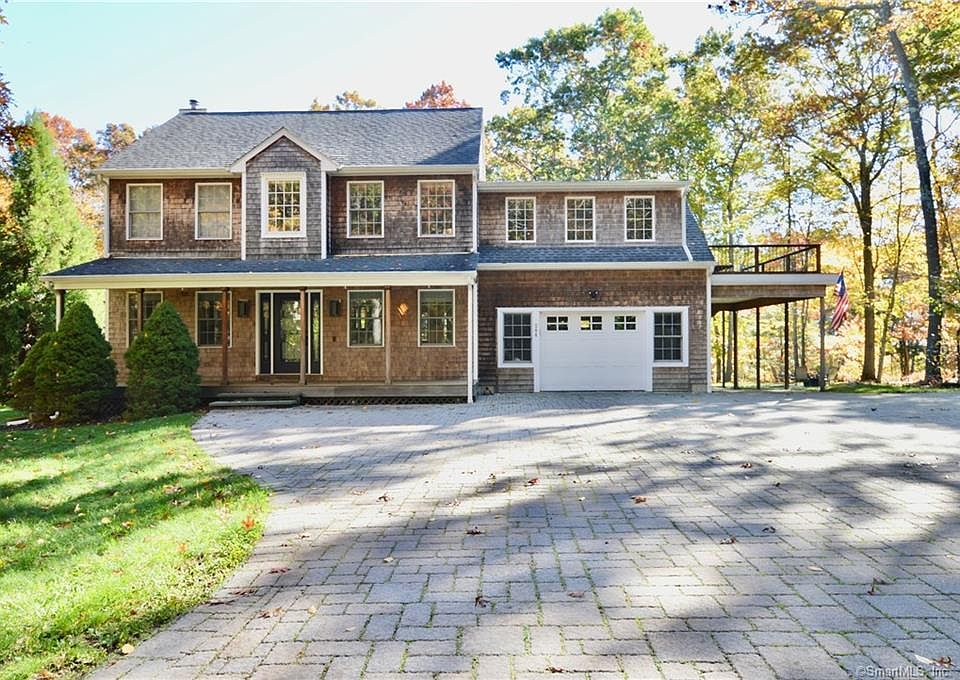 Enchanting 3 bedroom and 2.5 bath Colonial in Mystic, conveniently located minutes to Downtown, a short distance to Interstate I-95, Electric Boat, Naval Submarine Base, Pfizer and more. Set privately from the road, down a shared drive, this impressive home sits serenely, on over an acre. This tree lined oasis features a semi-open custom floorplan, with an additional expansive outdoor living which includes 3 decks, perfect for entertaining. Some of this homes energy saving attributes include smart thermostats, remote intelligent lighting, multizone heating and fuel types; to maximize savings, even remotely. All 4 finished levels of living space, create an abundantly functional layout design, which includes a finished walk-up attic with bamboo floors & custom built-ins, a bonus room over the garage with private entrance & cherry wood shelving, a sunroom addition with radiant heat, and a gym in the lower level with pine lined walls as a sound barrier. This house has captured the hearts of many, and is a must see to appreciate all it has to offer. See additional remarks for more specific features. New England Style Farm Porch, Central Air, Automatic Generator, Heated Garage, Carport, Radiant Heat Floors, Primary Ensuite Spa, Kohler Steam Shower, Cedar lined closet, Cambria Countertops, Stainless Steel Appliances, Smart EcoBee Thermostats and Lumen Intelligent Lighting, In-Home Theatre with Surround Sound & Projector Screen, Swarovski Lights & Crystal Chandeliers, Custom Star Gazing Fiberoptic Lightbox, Custom Window Treatments, Designer Shades, Gas Fireplace, Kitchen Window Nook, Cathedral Ceilings and more.