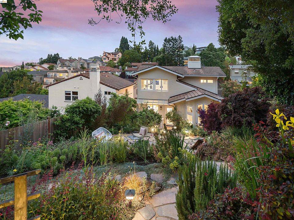 Welcome to your oasis nestled in the heart of Upper Rockridge! This exceptional 3++ bed, 2 ½ bath residence full of light, blends elegance with comfort. Vaulted ceilings and polished hardwood floors greet you, creating the perfect ambiance for relaxation and social gatherings. The open floor plan merges indoor and outdoor spaces, offering versatility for any occasion. Renowned Bay Area designer, Cillesa Ullman, worked her magic in the chef's kitchen and bathrooms, marrying style with practicality. Picture yourself whipping up culinary delights in the kitchen or indulging in a spa-like retreat. Upstairs, discover a luxurious suite featuring a cozy sitting room or office space. The lavish bathroom boasts heated floors, a walk-in shower, and a soaking tub. Step into the landscaped garden, featured in "The Beautiful Edible Garden," where nature's beauty invites you to unwind and play. Nestled within this haven is a separate office or guest space, offering solitude for work, focus, or peaceful repose. Cherished by Jeff Bridges' daughter, this home radiates warmth and joy. Jeff spent countless moments here, playing in the garden, sharing meals, and making music with his grandchildren over the past few years.