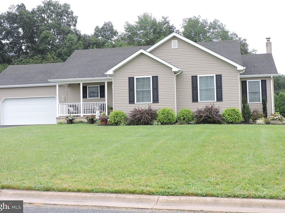 Country Living!! This 3 bedroom 2 bath ranch home with a basement is located in a popular neighborhood of Whitetail Run. Home has a two car garage that has a walk out door to the back yard and an attic pull down stairs, and accessories to the interior. There is a front porch that is 6’ x 16 ' enough to sit out and relax. Into the foyer with hardwood leads to a large great room with a vaulted ceiling. This room has a gas fire place that adds comfort on cold days in the winter. The dining room has a slider that leads to the large 16' x 39' patio. There is also a fire pit in the back yard. The kitchen has a pantry, lots of cabinets and all the appliances. Electric stove, microwave refrain, and dishwasher. There are 3 bedrooms the primary bedroom has a bath and walk in closet. The are two spacious other rooms . The hall bath has a linen closet in the hall. The basement has a bilco door to the back yard. There is a finished room 10x12 not included in square footage. The spacious laundry is also in the basement. There is plenty of space to add your own touch . You can opt to finish the basement and maybe add a family room. And if you put the bath in the future roughed in area could be added space for the family. There is a separate electric box in the basement. The lot is next to open space and there is a tree line in the back yard. There is also a 12' x 20' shed. They added stone to the side of the driveway to allow for more parking. Home owners just put in a new hot water heater end of July.