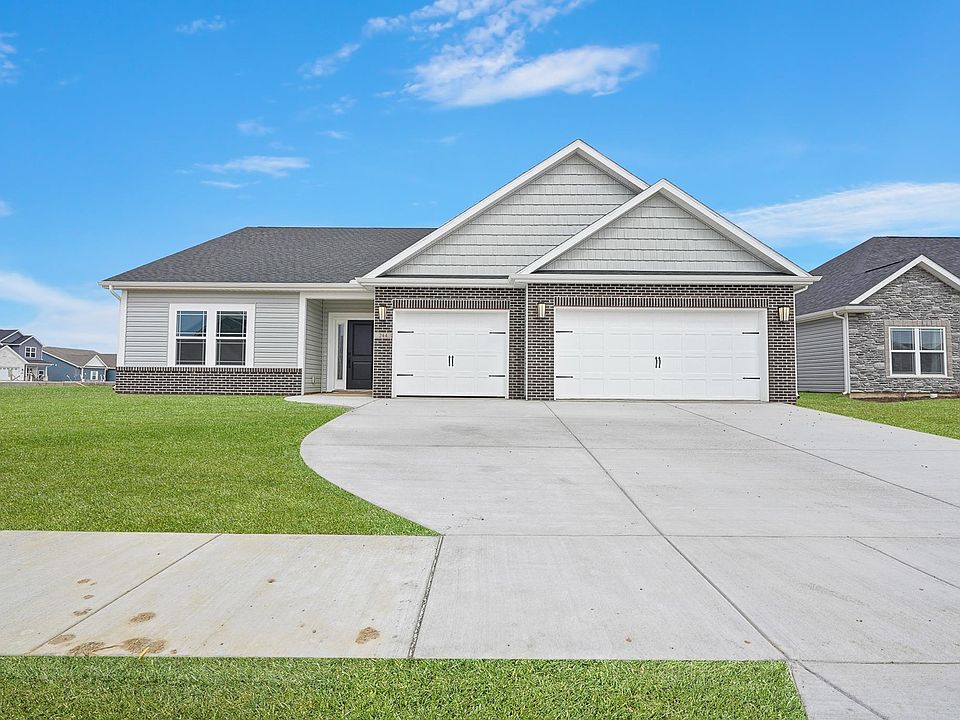 Home Sweet ALL NEW Home! This 3 BDRM, 2 Full Bath, open concept Ranch style home with a Bonus 3rd car garage, & exterior covered patio is BEAUTIFUL from top to bottom, & inside out! Located in desirable new Auburn Meadows, this is the perfect place to call home! Interior features to include 9’ ceilings, cozy Gas Fireplace in Great Room, & Luxury Vinyl Tile throughout main living area. Chef’s dream kitchen to include an expansive 9’ Kitchen Island, Granite countertops, custom cabinetry (staggered w/crown molding), California closets, + modern & energy efficient lighting package throughout. All new Stainless Steel Appliance package, with Gas Range. Master Bath includes a luxurious custom tile shower, & dual vanity with cultured marble. Exterior features include beautifully crafted cultured brick, architectural shakes, & carriage style garage doors. Fully sodded front yard, a full-size covered patio, with a bonus sun patio. Endless area amenities, close to walking trails, community garden, farmers market, & Purdue University. Don’t miss the chance to make this where your new story can begin! *Exterior photo's enhanced while awaiting for yard installation.