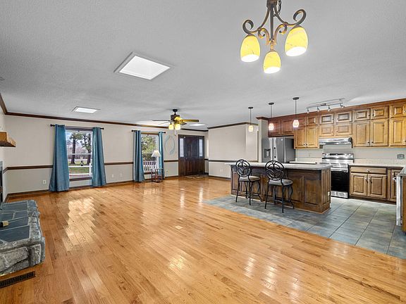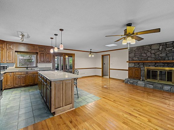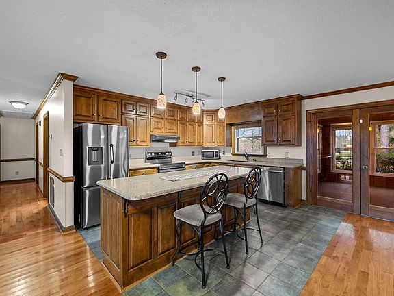 Beautiful Ranch Home on acreage with three large outbuildings and NO HOA. In 2008, Sellers re-sided with vinyl siding, installed new roof, replaced all windows, installed hardwood and tile floors, and added quartz kitchen countertops. 2022 new Trex deck boards on deck. 2023 new kitchen appliances. Enjoy the fenced back yard from the deck or screened porch in this low maintenance main floor living retreat in the country with easy commutes to all the cities. Three outbuildings - one is a two car garage outbuilding, the other two are storage buildings.