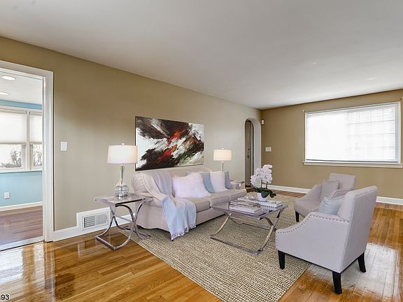 Wonderful home, perfectly located on a dead end street and truly well cared for. Updates include the kitchen with breakfast bar, recessed lights, windows, 200amp service, roof, fiberglass back door, and side garage door, hot water heater. Kitchen is open to dining room, perfect for today's life style. House has hardwood floors in most rooms, powder room on first floor & unheated den. Basement has newer full bath w/stall shower, French drains & sump pumps. Rear patio and yard backs up to wooded area. Located close to NYC bus & train. AC can easily be added, just the compressor is needed.