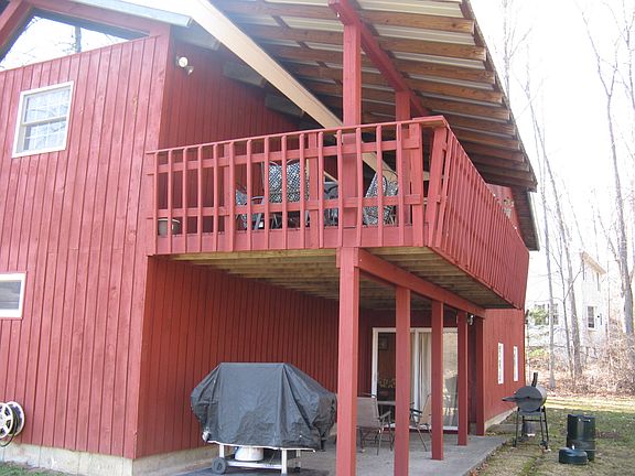 Owners Relocating! Charming, custom built post & beam contemporary home with vaulted ceilings and warm, inviting knotty pine walls and ceilings! Lower level features a family room with wood stove, sliders to patio, bedroom and full bath, and has been used as in-law living. Master bedroom enjoys large walk-in closet with California closeting and spacious master bath. The large attached 2 car garage, newly paved driveway and private, landscaped back yard completes this awesome picture! You'll never want to l