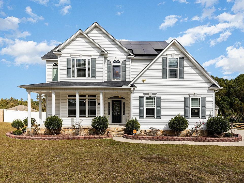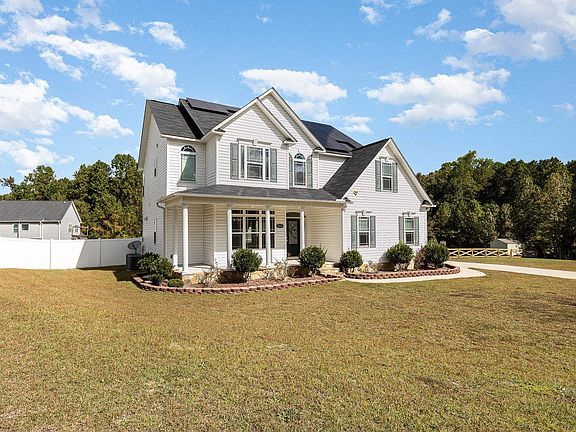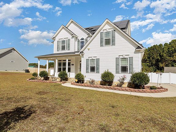 Enter this Beautifully maintained home with tons of space and an OPEN Floor plan through a gorgeous custom front door. Spacious floor plan boasts 4 bedrooms, office area, 2 full baths, and 1-.5 bath. 4th bedroom could be bonus room. Lovely master bedroom has a walk-in closet, luxury bath with double sinks, separate tub and shower. Kitchen with granite countertops, tile backsplash, bar area, and stainless steel appliances. Newly stained large deck with seats and planter boxes has room for lots of tables. Guests overlook the wonderful backyard w/ playground set and perfect setting patio area for extra entertaining. Solar Panels mean low electric bill. Solar panels are paid for. No HOA.