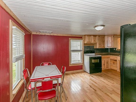 Looking for a mini farm and great starter home; well this one is for you! Lovely little ranch is situated on 5.51 acres with cattle/horse fencing already available! House has been recently remodeled to include beautiful cabinets and hardwood floors in the eat-in kitchen! There is hardwood look laminate throughout the home with ceramic tile in the bathroom and laundry room! The living room has a wood burning stove for cozy evenings by the fire or escape to the Master Bedroom with its private sitting area! Enjoy quiet time on the covered front porch while listening to the rain on the metal roof. Property has a large barn as well as an additional storage building. Close to town but welcomes country living on the farm! Bring the critters and move on in! This home is covered by Home Warranty of America! Information herein is deemed reliable but not guaranteed.