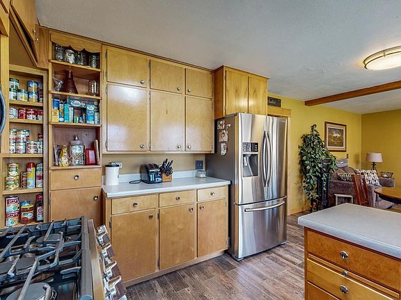 Comfortable and warm ranch style home with main floor living situated along a quiet street in an established neighborhood. Enjoy 3 bedrooms, 2 baths, replacement windows, good roof, steel siding, main floor laundry and newer mechanicals. Recently finished lower level features family room, primary bedroom with large walk-in closet and bathroom. Appreciate the new concrete patio, fenced yard and storage shed in the backyard. Walking distance to High School, pool and park. Quick possession available!