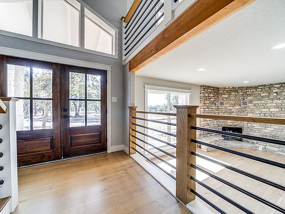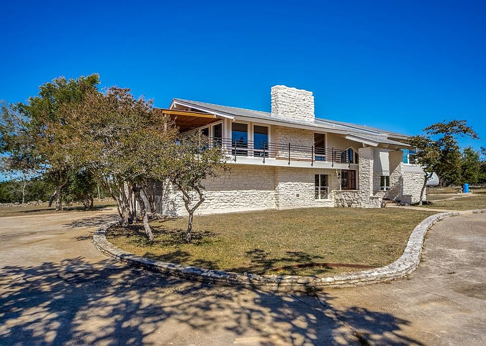 One of a kind Texas Hill Country property with incredible views on over 10 acres with great hunting and a seasonal creek. This unique split-level home has been completely remodeled to offer 3 spacious bedrooms, 4 full baths and a half bath. The entryway welcomes you with the stunning floor to ceiling original rock accent wall and gorgeous staircase with warm wood flooring and rustic wrought iron railing. The lower level includes a large family room with the original rock fireplace, with a full bath for easy access, 2 secondary bedrooms and utility/office space. As you travel up the grand staircase to the second level you are met with the large open floor living, dinning, and kitchen. The grand second floor fireplace is original and adds to the warm appeal in design along with the wood beam and posts. Retreat to the private master suite with large windows and high ceilings. Oversize walk-in closet with custom cabinets and shelving. The ensuite is breathtaking with granite double vanity, soaking tub, and a frameless tiled shower with double shower heads. Enjoy your morning coffee on the covered partial wraparound porch with incredible Hill Country views.