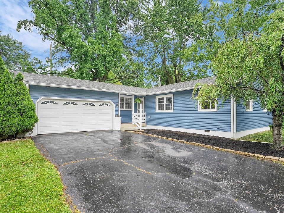 This beautifully remodeled ranch offers almost 1400 sqft of modern living space. The open family room connects seamlessly to a stylish kitchen featuring white cabinetry, designer black stainless appliances, a chic backsplash, and contemporary lighting. Enjoy the cozy wood-burning fireplace with an elegant mantle. The finished basement adds extra living space. Upgrades include new siding, quartz kitchen countertops, soft-close cabinets, new windows, and updated HVAC. High-end Kohler faucets and smooth texture ceilings complete this must-see home.