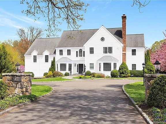 Classically CT and framed by stone walls, this flat private 1-acre property is ideally located near town, train & school. This Stately 4+ Bedroom colonial with 4200 sf boasts high ceilings, hardwood floors & sundrenched spaces. Enter a 2 story foyer to the gracious living room with a woodburning fireplace, bay window & French doors, while the formal dining room offers custom built corner china cabinets & paneling. The eat in kitchen features white cabinetry with great storage, stone countertops, a large island for gathering & an eat in area overlooking the terrace & yard beyond. Steps away is the huge, sun filled family room with vaulted ceilings adding loads of space for everyone. The sunroom features a fireplace, French doors & wet bar. An additional room for office or play is located on the 1st floor. A large master bedroom with cathedral ceilings, his/hers closets & a luxurious bath create a wonderful retreat. 3 addl large bedrooms & 3 more baths complete the 2nd floor. Spacious laundry room with countertops & an organized mudroom with cubbies. Large terrace with sitting walls creates a wonderful space for memorable entertaining & overlooks the private back yard with lovely plantings. Loads of space for pool. 3 car garage. Ideal location...walk to town, train & school. Add value to a walk-up attic which is ready to finish to add more bedrooms, a gym or bonus room, & the full basement can be finished as well. A 5th bedroom can easily be added in existing space.