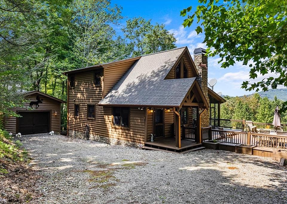 Located just 15 minutes from downtown Blue Ridge, Mercier Orchard, and other attractions, this beautiful north Georgia mountain retreat in desirable Indian Ridge is ideal for a short term rental or a private getaway. Nestled in a serene setting with breathtaking views, this meticulously maintained home is designed for both relaxation and entertaining. Step inside to an open-concept floor plan that fills the living, dining, and kitchen areas with natural light, and the spacious layout creates a warm and inviting atmosphere, complete with cozy touches and rustic finishes throughout. With 3 large bedrooms, 3 full baths, and a finished basement which opens to a large porch, there is ample space for family and guests to gather. The cabin also features cathedral ceilings, a gorgeous stacked stone fireplace, and a spacious kitchen with stainless steel appliances, making the space ideal for entertaining. Enjoy the outdoors year-round with screened porches and multiple decks—perfect for morning coffee, evening cocktails, or simply taking in the peaceful surroundings. After a day of adventure or recreation, cozy up to the outdoor fire-pit, where you can unwind under the stars. Whether you're looking for a primary residence, vacation getaway, or investment property, this home offers the perfect blend of indoor comfort and outdoor charm. ***Sold fully furnished, minus a few items *** Home was pressure washed and freshly stained in September 2025***