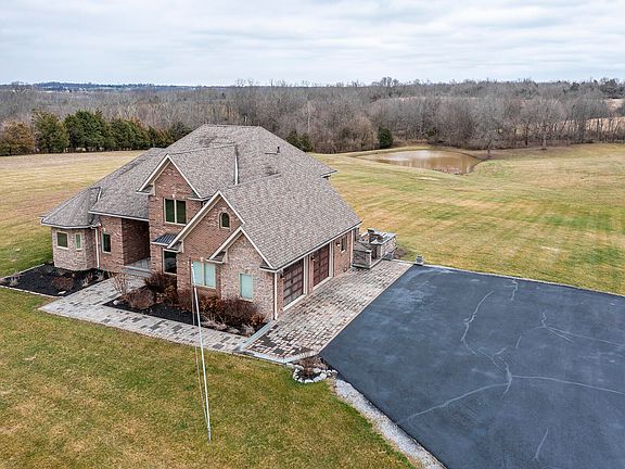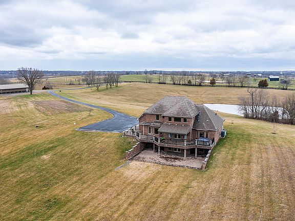 OPEN SUN 2-4 Imagine driving through your gated entry and down your driveway to your 25 acre estate that has 2 ponds and gorgeous views. This custom crafted home is full of charm and elegance. A gourmet kitchen with stainless steel appliances, double ovens, a chef's kitchen island, quartz counters and custom maple cabinets. French doors open to an elegant entertaining porch overlooking one of the ponds. Two story gas-log fireplaces, with towering stone accent and built in shelves. Two story foyer, hardwood floors and custom trim throughout. Owner's suite has a fireplace and lovely bay windows. Large tile shower, jetted tub and double vanity. Dual walk in closets with custom built ins. Fantastic outdoor cooking area. Lower level walk-out basement that features a living room, kitchenette, and bedroom with full bath and walkin closet. Unfinished space for a workshop and space for a gym. Don't miss the 2400+ sqft building. This spectacular property is perfect for housing your animals and enjoying all of your favorite outdoor activities. All of this, just 10-15 minutes from town!! Call for more info and you can schedule your showing TODAY and come see this beautiful home in person.