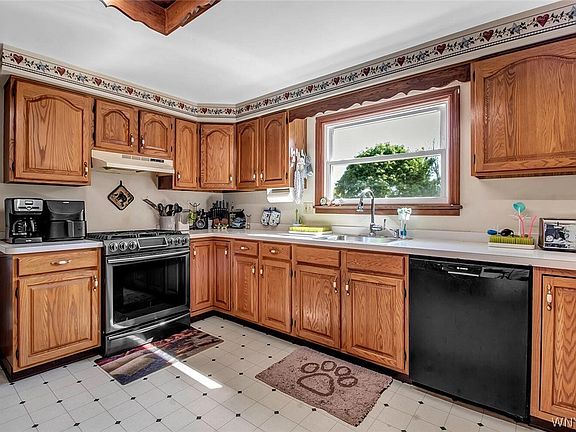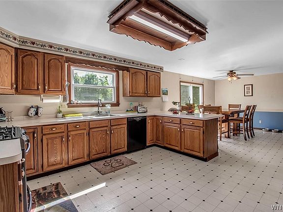 Welcome to 244 Lake Rd in Youngstown! This home consists of 5 bedrms & 2.5 bathrms. The layout of this home is impeccable! The front dr leads you to an open foyer with an awesome exposed staircase. The LR (21' x 13') has new recessed lighting, laminate wood flrs & wood burning fireplace, with a deep mantle! Projection screen just above the mantle for all those movie nights (projector excluded)! This home also has an additional FR (19'x13') with newer pet proof carpeting & more recessed lighting. Open to the DR with fresh paint & nest thermostat. Spacious kitchen with newer window, pantry, bkfast bar & room to eat in! Stove ('18), DW ('20) & Ref are included! The 1st floor also has a recently remodeled 1/2 bath, laundry / mudrm with newer tile & plenty of rm for storage! Upstairs, each bedrm is unique with great closet spaces! Primary bedrm has his/her closets & ensuite bath! 1 of the bedrms smaller would be a perfect home office. Huge bsmt has workout area. 2 car garage has brand new dr, tracks & motor. Back drs lead to deck, patio, garden, play set & fire pit, within a fully fenced backyd, with 3 gates! Offers will be reviewed as they come in. OPEN HOUSE CANCELLED! 2022-09-20