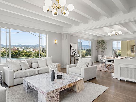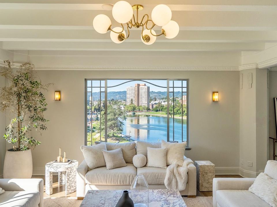 Relax into lakeside luxury at The Sparrow's Nest on Lake Merritt. Perched high above the city with unobstructed views of Lake Merritt, Snow Park, and Schilling Gardens, the Nest blends stunning views with classic grandeur and modern convenience. Perfectly located on the lake, yet blocks from top restaurants, music venues, and just three blocks from BART, this iconic building makes no compromises and offers the best of all worlds: stunning nature views AND an unbeatable metropolitan location. A storied 100 year history, WITH a restoration and gut renovation completed in 2024 providing updated systems, electrical, and copper plumbing. The bedroom wing features three spacious rooms, all en-suite with private baths and views of the garden and Snow Park. Panoramic views of the lake take center stage in all of the living areas: a family room off of the kitchen flooded with afternoon sun, a chef's kitchen with Bertazzoni gas range and oversized quartz island, luxurious soapstone-mantle fireplace'd living room, and dazzling dining room. A laundry room, private elevator entry, and 1 parking complete the home. With amazing views, an unbelievable location, classic style, modern systems and 2420sqft of room to spare, you'll want to settle in the moment you flutter in the door.