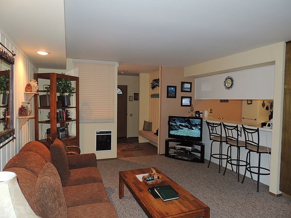 Very clean and bright one bedroom corner end unit. Bunk area off living room for additional sleeping. Newer carpet and appliances. Convenient parking. Right out your front door catch the shuttle to Canyon Lodge and short distance to the Village. Located at Seasons 4 Condos which offers pool, spa, sauna, laundry and recreation room facilities. Sold furnished in turn key condition. Unit #127 is a cozy one bedroom one bath condominium (sleeps up to 4) that is the perfect small Mammoth family get-away. The extra window in the dining area gives this corner unit a very light and airy feel, providing all the comforts of home. The bedroom has a queen size bed plus TV/VCR and DVD Player. Relax in front of the lava rock wood burning stove and enjoy one of the provided books or games. The bunk area is always a nice option for families, and this one has a curtain for privacy and boasts a double bottom bunk. For your entertainment the living room also offers a TV/VCR, DVD Player and stereo with CD Player. This condominium gives you the convenience of free long distance, domestic and 45 countries internationally as well as free WIFI Internet service. For those winter warriors this home also features a season's locker at Canyon Lodge!