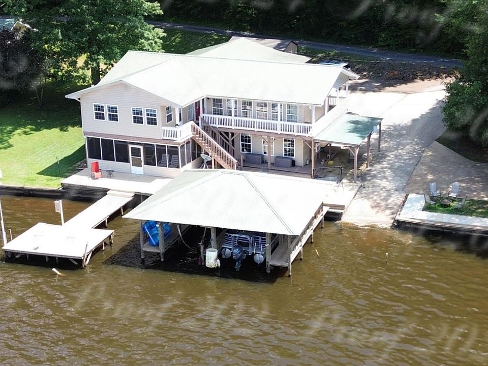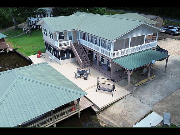 This home is a Lake D’arbonne gem with expansive water views from most rooms built with entertaining in mind! See this 3 bedroom 2 bath with split floor plan, gas log fireplace, combined living and dining area, large kitchen with built in gas stove top and new wall oven, and refrigerator included. Sunroom, huge deck area, fabulous man cave, and large bonus room that is a perfect bunkhouse or all purpose room, screened in front porch, plenteous concrete parking area and more! Amenities include a nice boathouse that houses pontoon size boat and also space for your bass rig. Also included is a pier, spacious storage area, home generator, and a heated and cooled storage building.