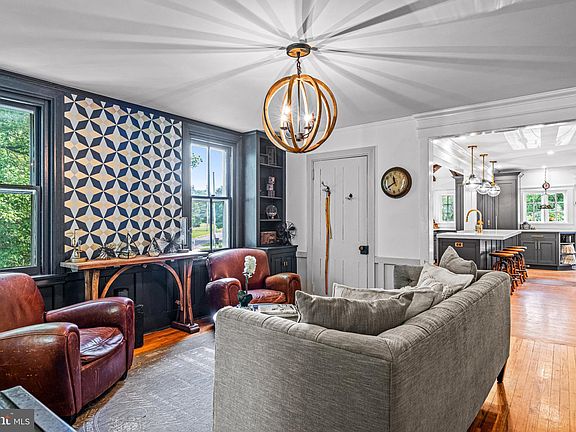 Welcome to 244 Leopard Road... Waiting for you is a meticulously restored 1880's farmhouse in top rated T/E school district. An open floor plan offers an airy feel throughout the main level, made cozy with the charm of original hardwood floors, wood beams and wainscoting. Reproduction push button style switches remind you of days long past, while drawers equipped with charging ports accommodate today's technology! The living room with original built-in cabinetry opens to a large (new in 2022) chef's kitchen with an oversized island that seats 4+, a farmhouse sink, coffee bar, and high end smart appliances (Monogram column refrigerator & freezer, 6 burner gas range with pot-filler, and second oven that doubles as a microwave, steamer and warming drawer). Adjacent eat-in dining area is complete with a built-in bar and wine refrigerator that is easily stocked from the underground wine cellar just steps away. A large family room with stone fireplace (gas) boasts high ceilings, accented with wood beams and architectural lighting. Finishing off the first floor, you'll find a home office with original wood burning fireplace that doubles as a fireside dining room. On the second level, you will marvel at the random width pine floors throughout. The newly renovated (2022) primary bedroom has vaulted ceilings, wood beams, and a walk-in closet that most homes of this era lack. The new primary bath has double sinks, a large marble shower and shiplap walls that fit seamlessly into the character of the home. There is even a laundry chute that delivers your clothes to the laundry room with front loading LG washer & dryer! Two more good-sized bedrooms are on this level (one with a cedar lined closet) as well as an updated hall bath with marble tile. On the third floor you'll find two additional rooms, with their own zone of HVAC, allowing you to expand the capacity of the home as needed while staying energy efficient. One room even has twin beds built in on either side, making clever use of space. (Currently, there are two bedrooms on the third floor) New HVAC throughout, updated electric and plumbing, and recently installed roof. Enjoy an alfresco meal or morning coffee on the original front porch that looks out onto the fully gated yard and perennial cutting gardens to enjoy from spring through fall! This home is an extremely rare find and has been lovingly maintained and updated by the same owner for over 20 years, during which many time capsules have been found within walls to reveal notes, pictures and historic tidbits from previous owners, providing precious clues and insights to the home's history. It is believed to have been an original Sears Kit Home from the late 1800s. Note-In the public record, the square footage is listed at 2064. This does not account for the family room added by the prior owners and the additional space added in 2022 with the kitchen or the now finished third floor. The estimated square footage according to the architect for the 2022 renovation is 2600. A survey would be required to determine actual square footage.