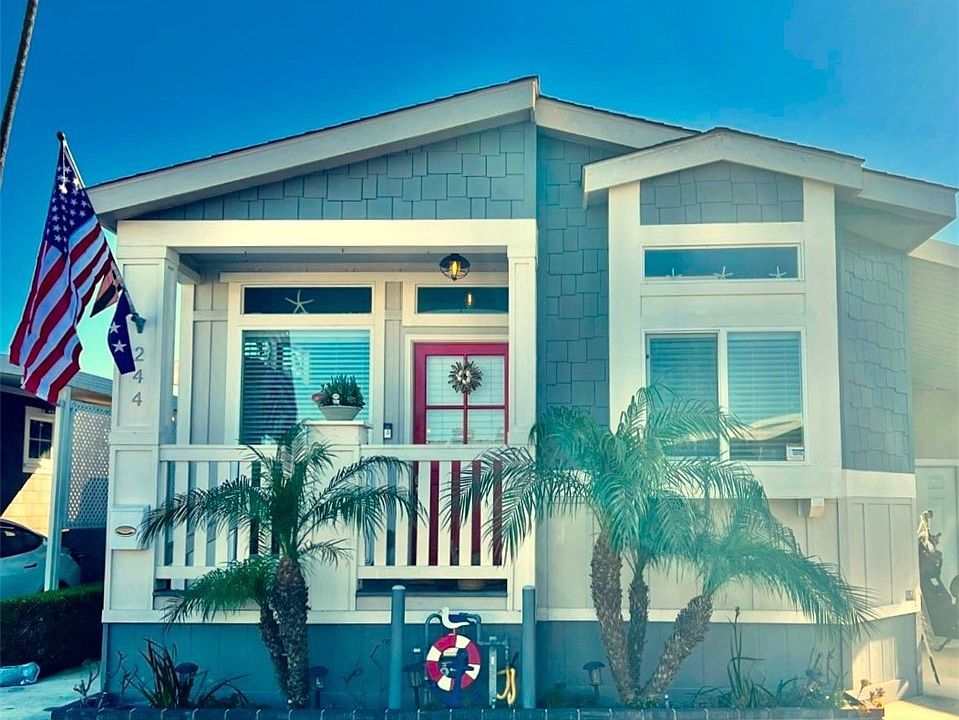 Unique custom 2 bedroom/2 bath manufactured home has a wonderful "outdoor" room with fireplace perfect for enjoying relaxing time. This property is turnkey and ready to enjoy the great room, open kitchen with island, high ceilings, recessed lighting, dining area, stainless appliances, lots of custom cabinetry and plenty of windows. Walk down the hall to the spacious master suite with high ceilings, large closet and a fantastic master bathroom with large tub, walk in shower and double sinks. The second bedroom views out to the patio yard and there is a great second bathroom with walk in shower. Outside is the unique indoor/outdoor covered patio room with fireplace & trex decking perfect for some quiet time, happy hour or watching sports. The patio yard has mature trees and a jacuzzi tub. This property is well located almost next to the south clubhouse, pool, jacuzzi, barbeque area & gym. Addtionally it is just a short stroll to the bayside north club house, pool, jacuzzi, private beach and dog park. And Bayside Village is just minutes to Fashion Island, Balboa Island, world class beaches and restaurants. Bike the Back Bay trail or kayak the Newport bay & waterways. It's all there for your enjoyment. Property is on leased land with monthly land lease of $3000 which includes water, trash and numerous community amenities. There are no HOA fees or land taxes. Come enjoy all that Newport has to offer at a fraction of the cost of surrounding million dollar neighborhoods.