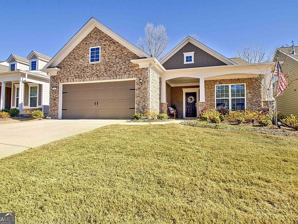 BETTER THAN NEW, absolutely! This 2-year-old Martin Ray is back on the market at no fault of the sellers, and your good fortune! This beauty has all the upgrades and more and shows like a model. Beautifully maintained with gorgeous, upgraded choices. This home can no longer be built and it is among the most popular models...come and see why. Three bedrooms, plus flex room, dining and great room, all the room you need and in all the right places. A popular floorplan because it best suites every need. Open floorplan with privacy. Ultimate curb appeal, with stacked stone exterior and welcoming front porch. Enter thru the covered front porch into a spacious foyer, pass the flex room (or office/craft room) and onto the heart of the home...the kitchen, dining area and great room! Upgrades: extensive neck and crown molding as well as 5-inch base molding, 5-inch hardwood flooring, granite countertops, subway tile backsplash, gorgeous light gray craftsman style cabinets (with convenience package, pull out shelving) with stunning hardware, pendent lighting, additional shelving in large walk- in pantry, plus a butler's pantry with glass door cabinets and the focal point...a huge island! In the great room, floor to ceiling stone corner fireplace, and there's more... stunning views of the wooded backyard and large patio, enjoy the outside from...outside or inside! with windows allowing lots of light. extended garage... The private owner's suite features a generous sized bedroom and a fully upgraded bath: large walk-in closet, more granite countertops, upgraded cabinetry and tile flooring. Guest rooms are split design allowing guests and owners privacy. Spacious laundry room, storage closet and garage with above attic storage. Nothing was left off the wish list when this home was built, and it is pristine! Lovingly cared for, literally better than new. Make an appointment to see this home today.