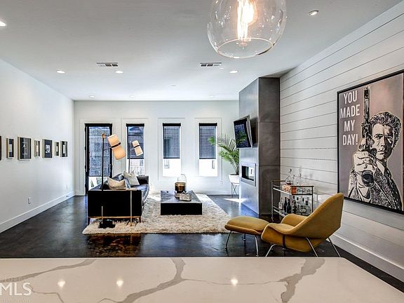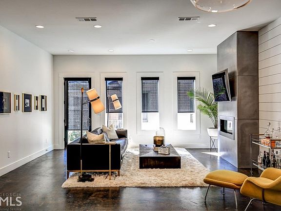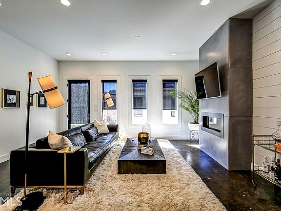 An aesthetic dreamboat! Almost new, fee simple modern townhome in hot Kirkwood. One of 2 units built, live in the lap of luxury with these finishes & rustic charm. Open floor plan with stunning & unique stained concrete floors, shiplap accent wall, vented gas-burning fireplace and separate dining area. Chef's dream gourmet kitchen with large island, marble countertops, subway tile backsplash, stainless steel appliances, plentiful cabinets & breakfast bar. Like to wind down? You've got the perfect spot on the private balcony attached to the oversized master suite or the HUGE rooftop deck with an incredible panoramic view towards the city!