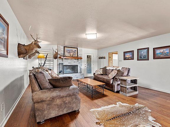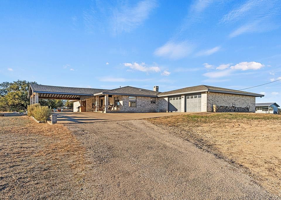 This picturesque 2849 sq ft home on horse property features a two-story 1200 sq ft workshop and office, along with an 864 sq ft horse barn.The home features a brick fireplace, granite countertops, elegant tile and wood flooring in the main living areas, and plenty of storage closets and cabinets throughout. The carpeted bedrooms are large and each have walk-in closets. The primary bathroom and guest bathroom have been newly updated with walk-in tile showers and the guest bathroom features a freestanding tub. A spacious 2-car garage is attached to the main home with extra room for storage and projects. The front porte cochre provides covered parking for guests or a shaded area to entertain. The separate workshop has a garage door for easy access to drive in a small tractor or riding lawn mower and the upstairs is an insulated office with AC. the lower level is a workshop with garage door for easy access to drive in a small tractor or riding lawn mower. This property features a horse barn with three stalls, a tack pen, a round pen for training, and well-maintained gates and fencing.All measurements, taxes, age, financial and school data are approximate and provided by other sources