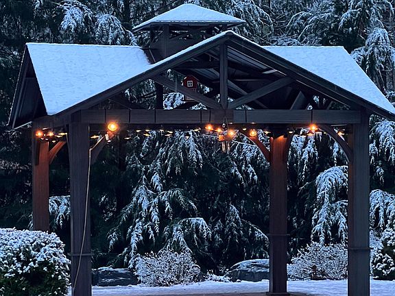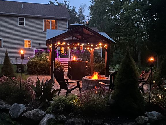 PRIDE OF OWNERSHIP! Offering~A METICULOUSLY maintained 4 bedroom home with curb appeal that doesn't fail to impress as U come upon the ALL season oasis that surrounds this home-inclusive of patios, walkways, a gazebo, exterior in ground speakers, a lg deck, a hot tub, sitting areas and more... INSIDE, you're welcomed by the warm cherry floors and natural light that take you through the formal dining room into the LG kitchen with granite, double ovens, a gas cooktop, beverage fridge and wet bar. The family room is cozy with the tray ceiling & recessed lighting & a pellet stove for ambiance! The mudroom has double closets and can be accessed from the front door or the garage entrance. THE 2nd floor brings U to 4 bedrooms, the primary suite providing plenty of storage with the 4 closets, double sinks in the bath, a sitting area and its own entry door for privacy. This home has central A/C, a whole house fire suppression system & is wired with interior surround speakers AND is landscaped AND irrigated to perfection ~ waiting for its new owners.