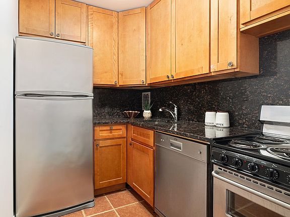 full kitchen equipped with sleek stainless-steel appliances, wood cabinetry, plenty of counter space, an abundance of closet space with a walk-in for ample storage, a modern tiled bathroom with soaking tub. Washer dryer in building for your convenience.