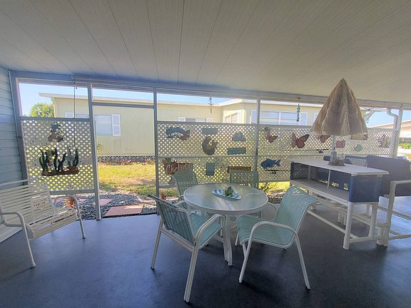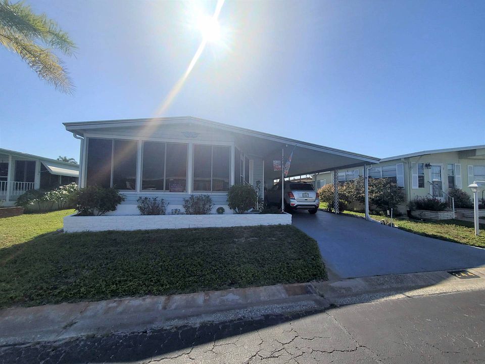 Just Listed $79,000.00 Unfurnished 1979, manufactured mobile home featuring 2 bedrooms and 2 bathrooms. This home has 1,152 sq ft of indoor living space, not including the front enclosed lanai. Stepping inside you enter the passthrough kitchen with plenty of cabinet and counterspace. The dining area has a wall built-in hutch with glass cabinets and drawers. Giving you extra storage space and room to display your fine China and décor. The living room is large and open. Plenty of room to entertain your guests. The sliding glass door leads out to the front enclosed lanai. The lanai has a vaulted ceiling, new vinyl floors, slider windows and shades on the front windows. Both bathrooms have been updated. The guest bathroom has a tub/shower combo. Master bath features a step-in shower with a sliding glass door. Master bedroom is large and could accommodate a King-sized bed, night stands and a dresser comfortably. Guest bedroom is also large with double closets and built-in drawers. This home has been very well maintained. Rubber roof over with a lifetime guarantee. AC is 6 years old. Lovely curb appeal. Side driveway, carport and storage shed. The storage shed hosts the washer and dryer. This home won't last long...you better run! Call today to make this your Florida dream home! Plantation Village is a Co-op 55+ Community. The lot rent is $610.00 per month and includes water, sewer, garbage, lawn maintenance, cable and WIFI. Activities include 2 pickleball courts, 2 bocce ball courts, horseshoe pit, heated pool, shuffleboard courts, library, exercise machines, pool table, and a picnic area with a grill. All listing information given to us is considered appropriate and reliable but always recommend a home inspection by independent companies who have a background and thorough understanding of manufactured homes. We cannot guarantee the accuracy of information given to us or the condition of the home. Lot rents are determined by the community office not our company.