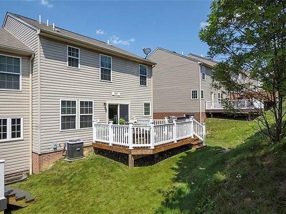 The best of townhome living! The Sellers carefully chose this maintenance free, end unit with Visitor Parking across the street. A newer deck with afternoon sun overlooks green space providing a pleasant and private setting. Your big screen TV will fit comfortably in the living room that will accommodate a variety of furniture arrangements. Cooks will love the new appliances and the convenient pantry in the large, spacious kitchen. Formal dining area with chair rail and crown molding. Master bedroom suite with vaulted ceiling and walk-in closet. Second floor laundry. Large lower level area perfect for your private gym. Prime location close to I-79 and Southpointe. Much larger than it looks! Just move In!!!!