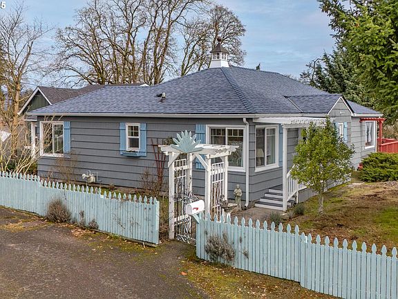 Charming Vintage Home with Breathtaking Views in Coveted Riverview District! Nestled in the heart of the highly sought-after Riverview District, this delightful 2-bedroom, 1-bath home is brimming with character and charm. Offering sweeping views of Mt. Hood, Mt. St. Helens, and Mt. Adams, as well as stunning water views from almost every room, this home is truly a rare find. Step inside to discover original hardwood floors complemented by durable laminate, all illuminated by natural light streaming through brand-new vinyl windows. Recent updates include a new roof and gutters (2022) and a new air conditioner and gas furnace (2021), ensuring comfort and efficiency year-round. Outside, the property is just as enchanting. A picket fence with an antique metal gate welcomes you into a lush landscape filled with trees, bushes, roses, and a charming grape arbor. The back porch is perfect for entertaining, while the sweet detached casita provides a private retreat for guests. Whether used as a cozy getaway for visitors, an art studio, or a home office, this charming space enhances the home’s versatility and appeal. Located in a quiet, safe, and well-established neighborhood, this home provides a peaceful retreat where you can watch eagles soar over the river and deer roam freely.