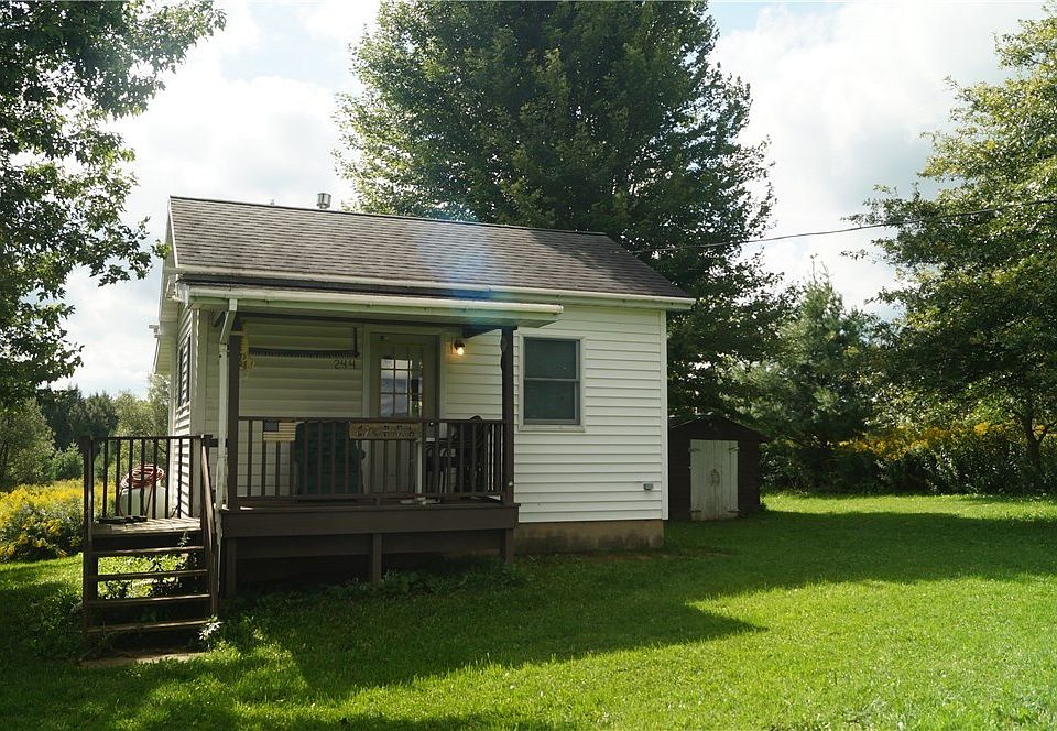 63 plus acres with 6 deer stands and thousand of trees - trails for hunters and snowmobliles with a stream running through the property. with a 2001 cabin with bathroom, kitchen and full basement and a 8 x 8 shed . Beautiful views from front and rear decks. Take a look - you won't want to leave!